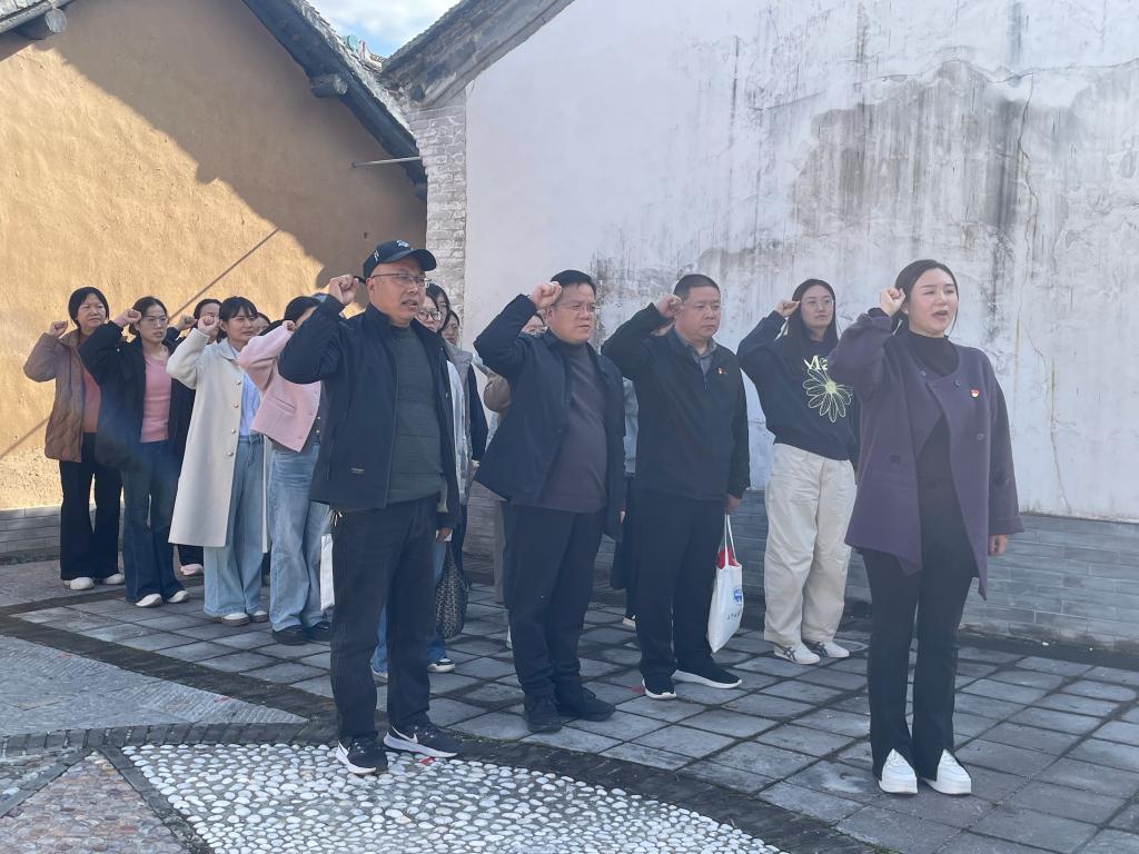 在卢氏红二十五军旧址参观学习,大家认真聆听了讲解员对红二十五军艰苦卓绝长征历程的深情讲述。一幅幅珍贵的历史图片,一段段感人至深的英雄事迹,生动再现了革命先辈们坚定的理想信念、不畏牺牲的奋斗精神和对党忠诚的政治品格。在旧址前,全体党员庄严肃立,重温入党誓词。
