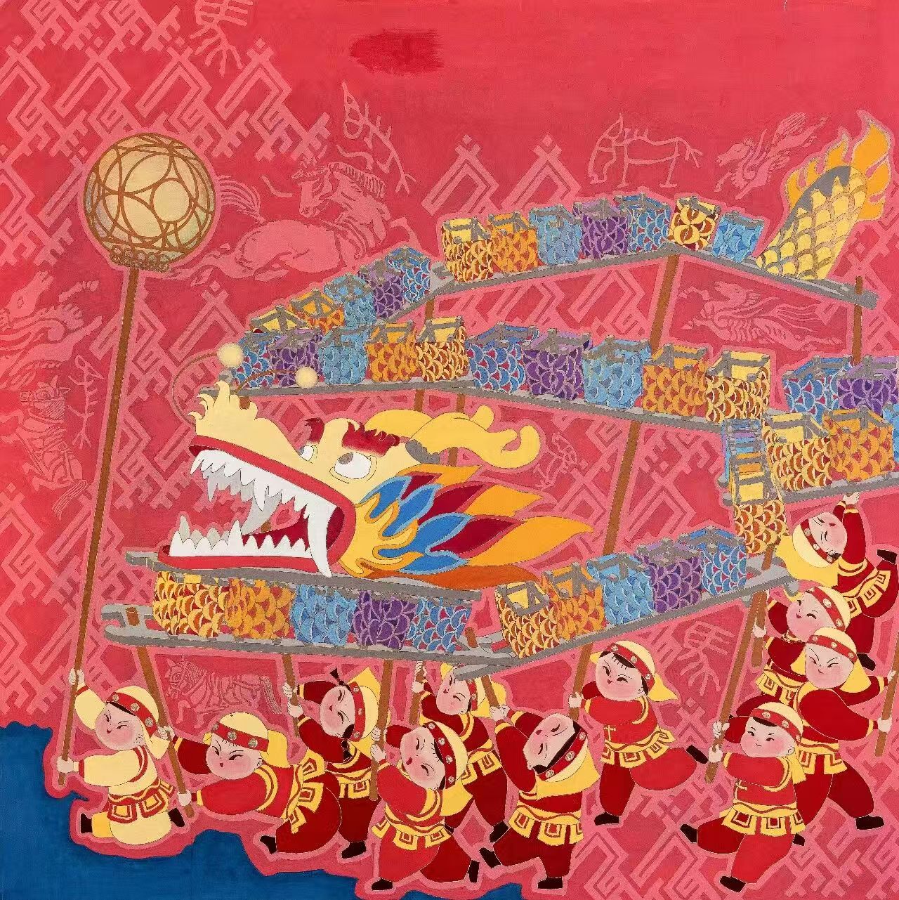 邱莹睿《骏马龙灯耀福年》